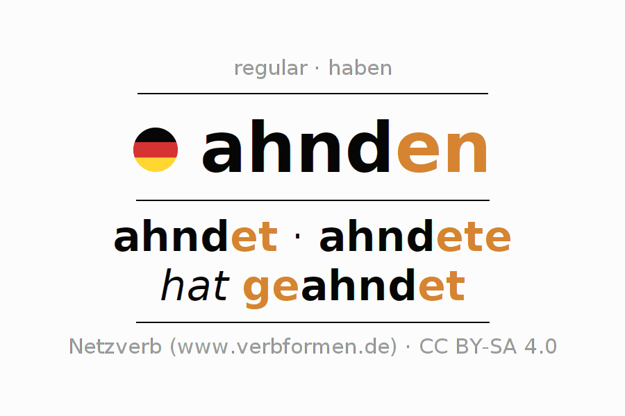 - Pasado perfecto: ich habe geahndet, du hast geahndet, er hat geahndet, wir haben geahndet, ihr habt geahndet, sie haben geahndet