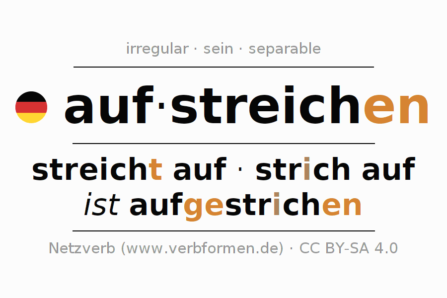 - Presente: streich(e) (du) auf, streichen wir auf, streicht (ihr) auf, streichen Sie auf