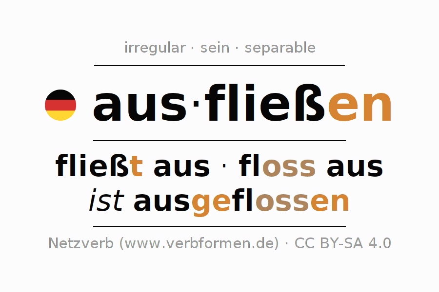 fließt aus · floss aus · ist ausgeflossen