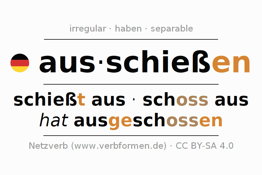 - Presente: schieß(e) (du) aus, schießen wir aus, schießt (ihr) aus, schießen Sie aus