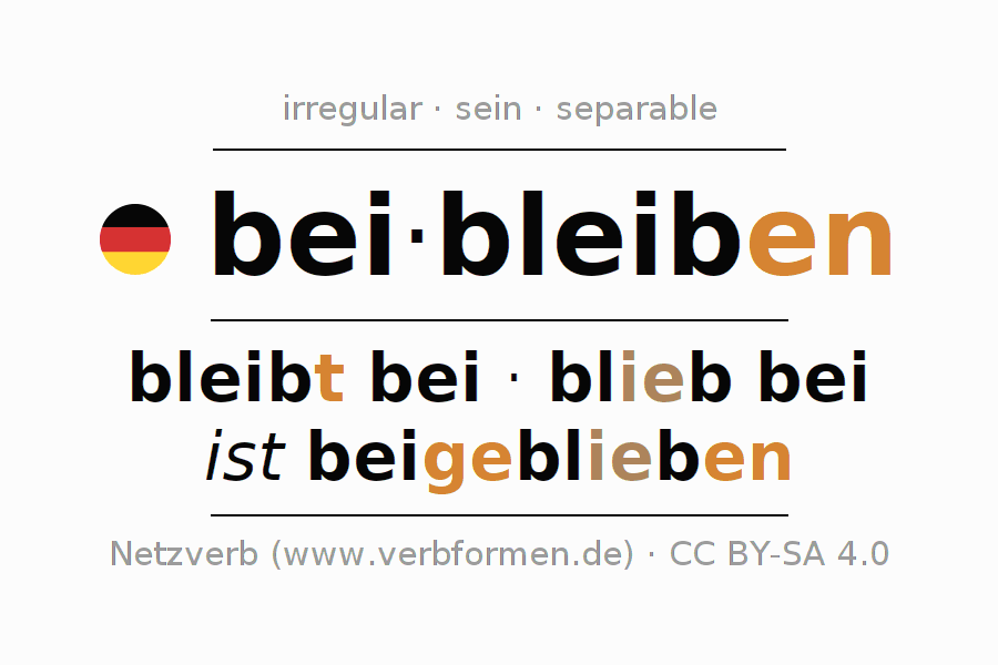 | ich | bleib(e) bei | blieb bei | bleibe bei | bliebe bei | - |