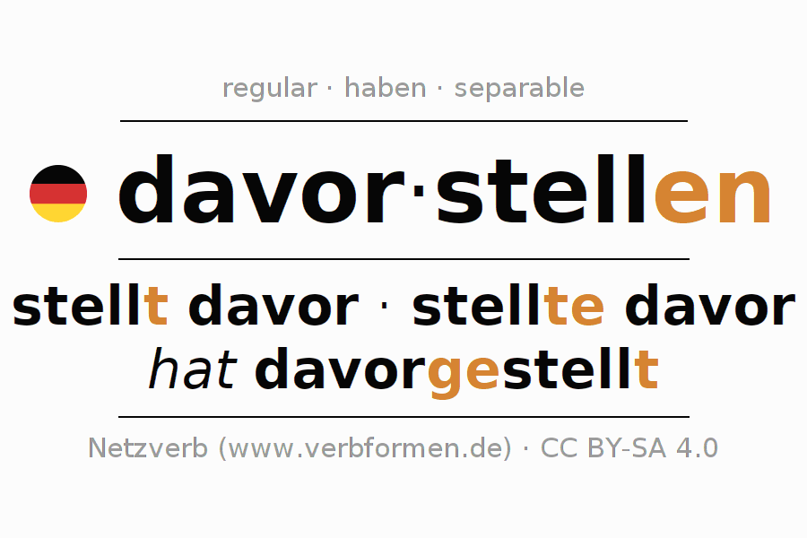 - Pasado perfecto: ich habe davorgestellt, du hast davorgestellt, er hat davorgestellt, wir haben davorgestellt, ihr habt davorgestellt, sie haben davorgestellt