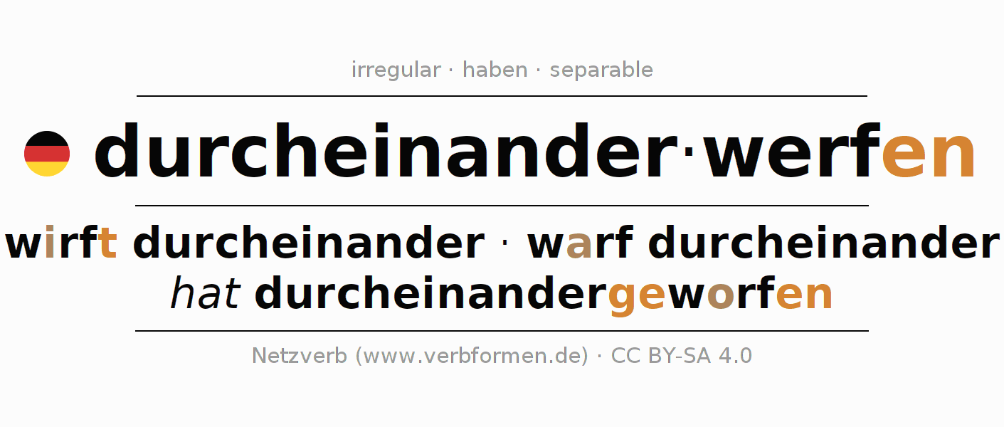 wirft durcheinander · warf durcheinander · hat durcheinandergeworfen