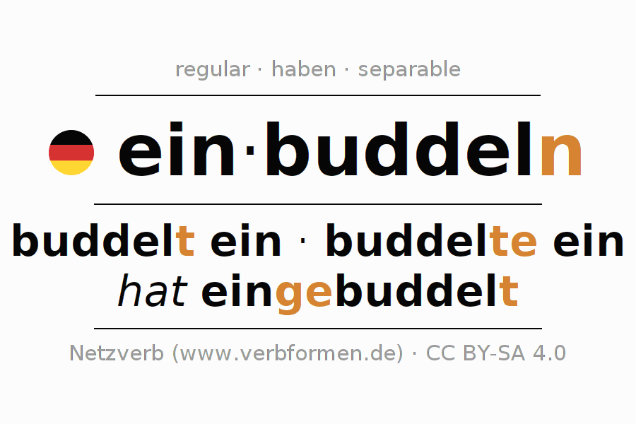 | ich | budd(e)l(e) ein | buddelte ein | budd(e)le ein | buddelte ein | - |