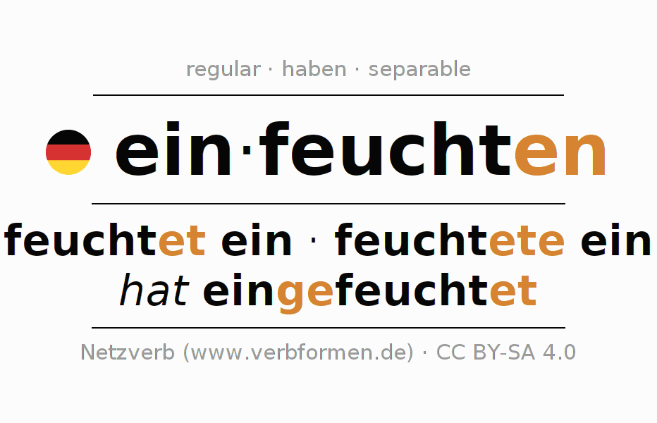 Significados y sinónimos de einfeuchtenReglas de inflexión