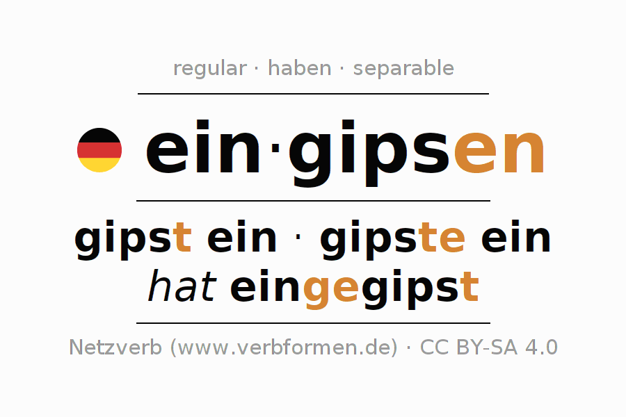 - ¿Cómo se conjuga eingipsen en Infinitivo?