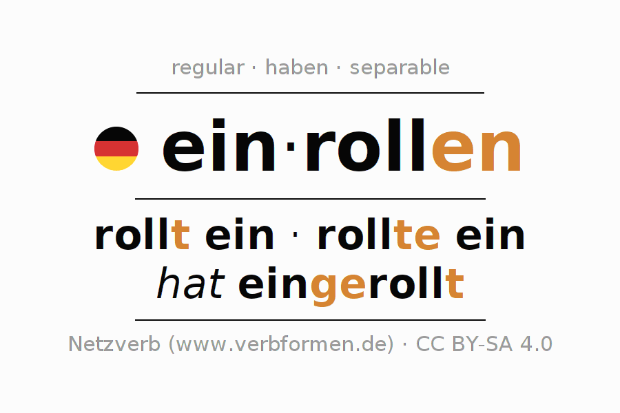 Ejemplos para la conjugación del infinitivo einrollen. Aquí tenemos fragmentos de texto reales y oraciones tomadas del proyecto Tatoeba. Por cada tipo de conjugación hay un ejemplo y la forma verbal se encuentra destacada. A veces hay más de una oración, pero en ese caso se seleccionará automáticamente un ejemplo del verbo alemán en cuestión. Para que además de aprender también practiques la conjugación del verbo, tenemos para ti Arbeitsblätter und Übungen hojas de trabajo disponibles.