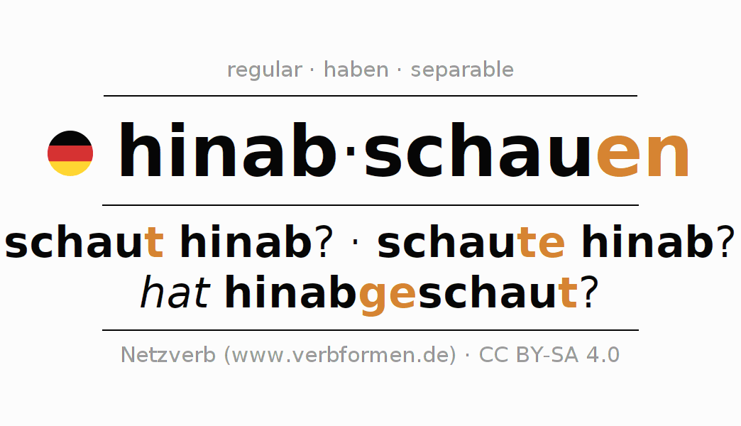 Significados y sinónimos de hinabschauenReglas de inflexión