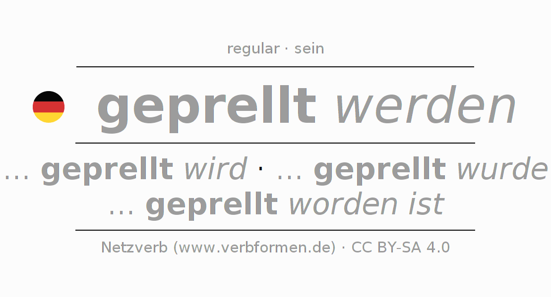 Ejemplos para la conjugación del infinitivo prellen. Aquí tenemos fragmentos de texto reales y oraciones tomadas del proyecto Tatoeba. Por cada tipo de conjugación hay un ejemplo y la forma verbal se encuentra destacada. A veces hay más de una oración, pero en ese caso se seleccionará automáticamente un ejemplo del verbo alemán en cuestión. Para que además de aprender también practiques la conjugación del verbo, tenemos para ti Arbeitsblätter und Übungen hojas de trabajo disponibles.