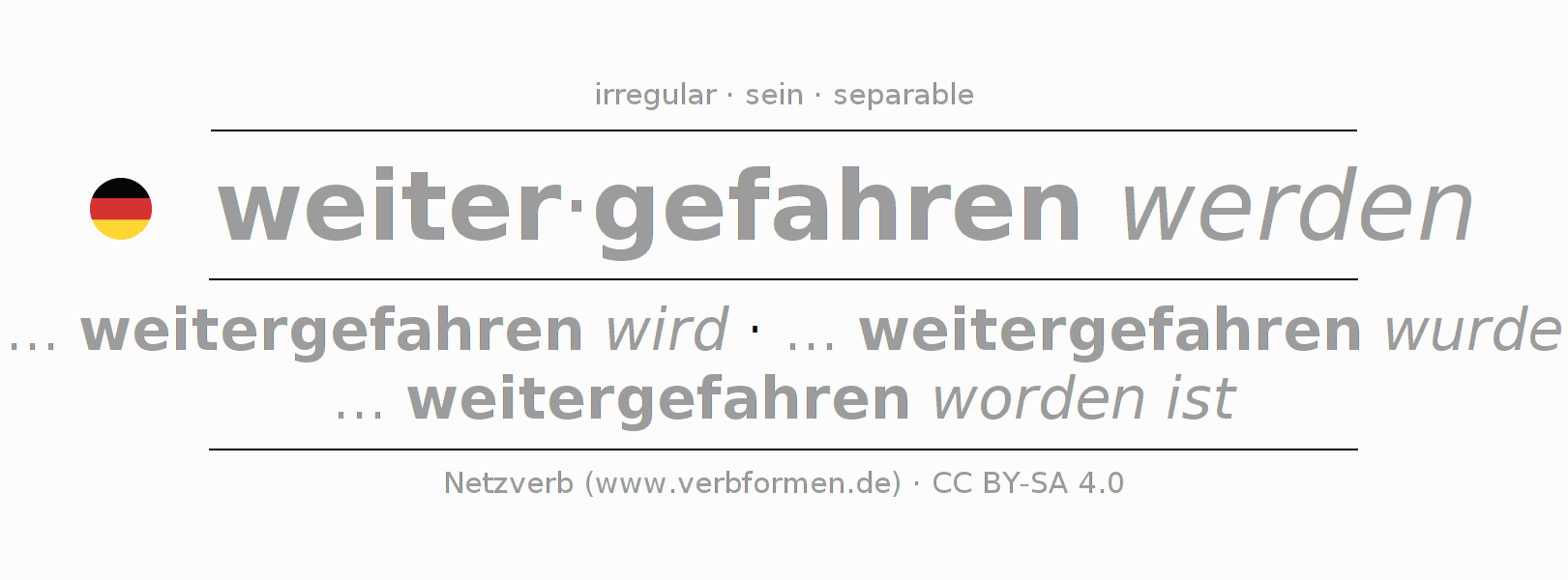 Significados y sinónimos de weiterfahren (ist)Reglas de inflexión