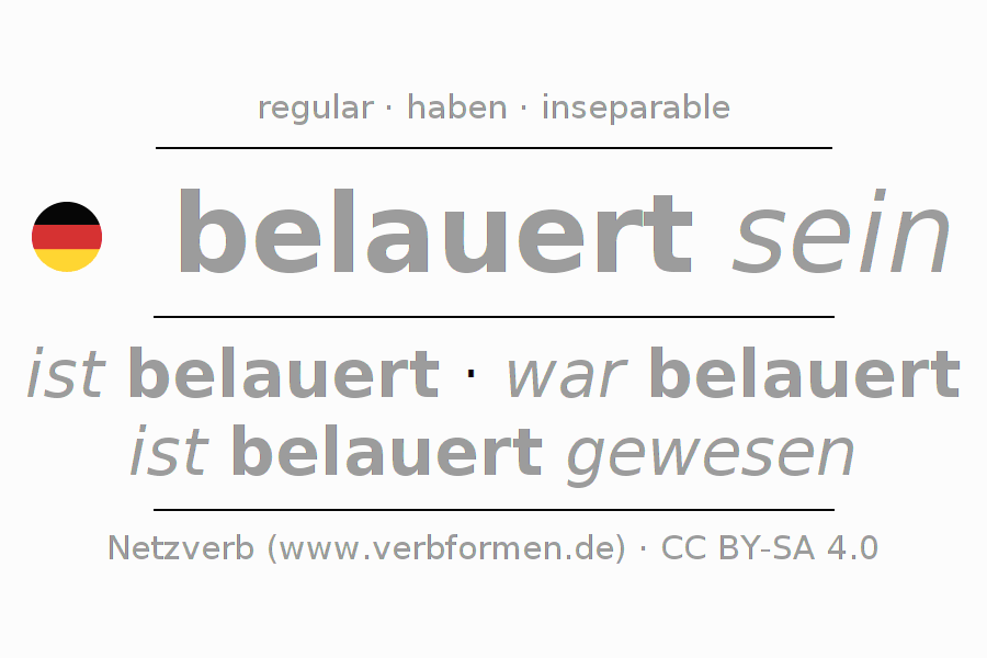 Ejemplos para la conjugación del infinitivo belauern. Aquí tenemos fragmentos de texto reales y oraciones tomadas del proyecto Tatoeba. Por cada tipo de conjugación hay un ejemplo y la forma verbal se encuentra destacada. A veces hay más de una oración, pero en ese caso se seleccionará automáticamente un ejemplo del verbo alemán en cuestión. Para que además de aprender también practiques la conjugación del verbo, tenemos para ti Arbeitsblätter und Übungen hojas de trabajo disponibles.