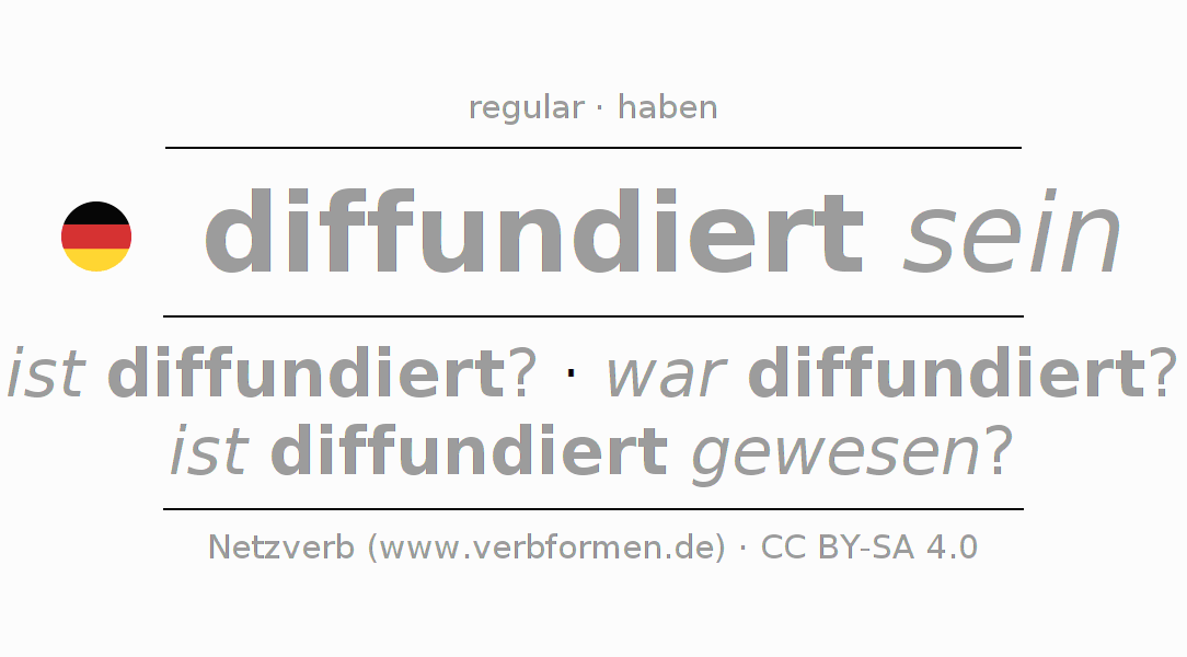 Ejemplos para la conjugación del infinitivo diffundieren. Aquí tenemos fragmentos de texto reales y oraciones tomadas del proyecto Tatoeba. Por cada tipo de conjugación hay un ejemplo y la forma verbal se encuentra destacada. A veces hay más de una oración, pero en ese caso se seleccionará automáticamente un ejemplo del verbo alemán en cuestión. Para que además de aprender también practiques la conjugación del verbo, tenemos para ti Arbeitsblätter und Übungen hojas de trabajo disponibles.