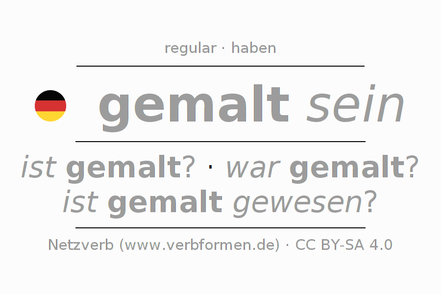 Ejemplos para la conjugación del infinitivo malen. Aquí tenemos fragmentos de texto reales y oraciones tomadas del proyecto Tatoeba. Por cada tipo de conjugación hay un ejemplo y la forma verbal se encuentra destacada. A veces hay más de una oración, pero en ese caso se seleccionará automáticamente un ejemplo del verbo alemán en cuestión. Para que además de aprender también practiques la conjugación del verbo, tenemos para ti Arbeitsblätter und Übungen hojas de trabajo disponibles.