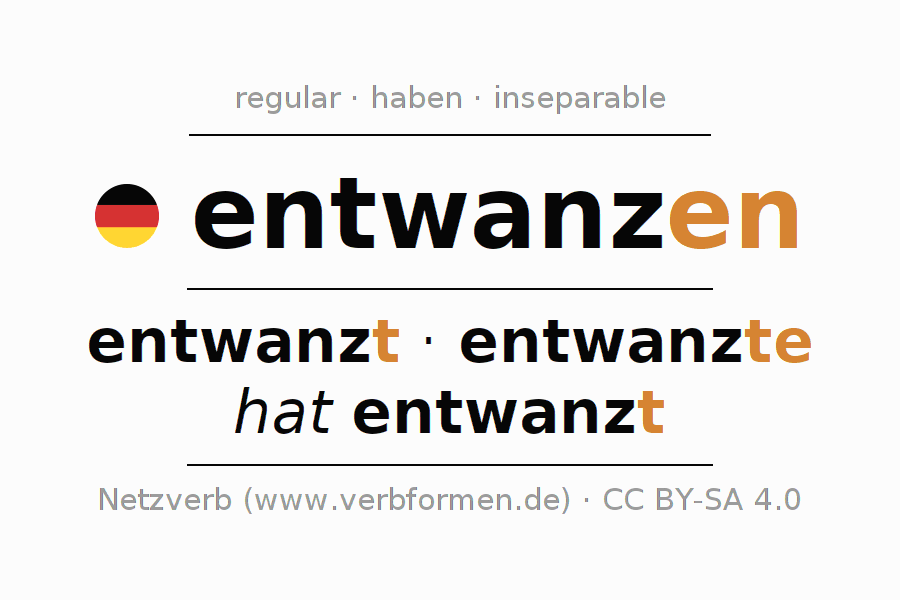 - Presente: entwanz(e) (du), entwanzen wir, entwanzt (ihr), entwanzen Sie
