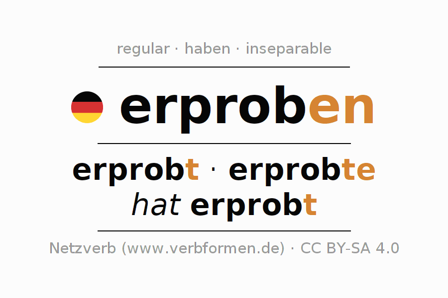 - Presente: erprob(e) (du), erproben wir, erprobt (ihr), erproben Sie
