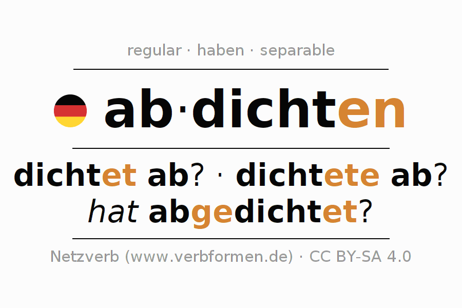 - Presente: dicht(e) (du) ab, dichten wir ab, dichtet (ihr) ab, dichten Sie ab