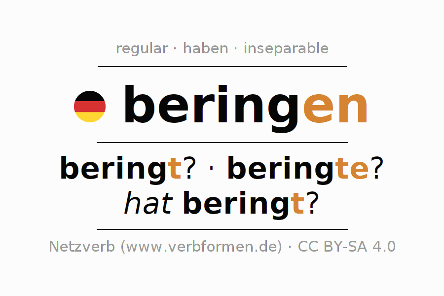 - Presente: bering(e) (du), beringen wir, beringt (ihr), beringen Sie