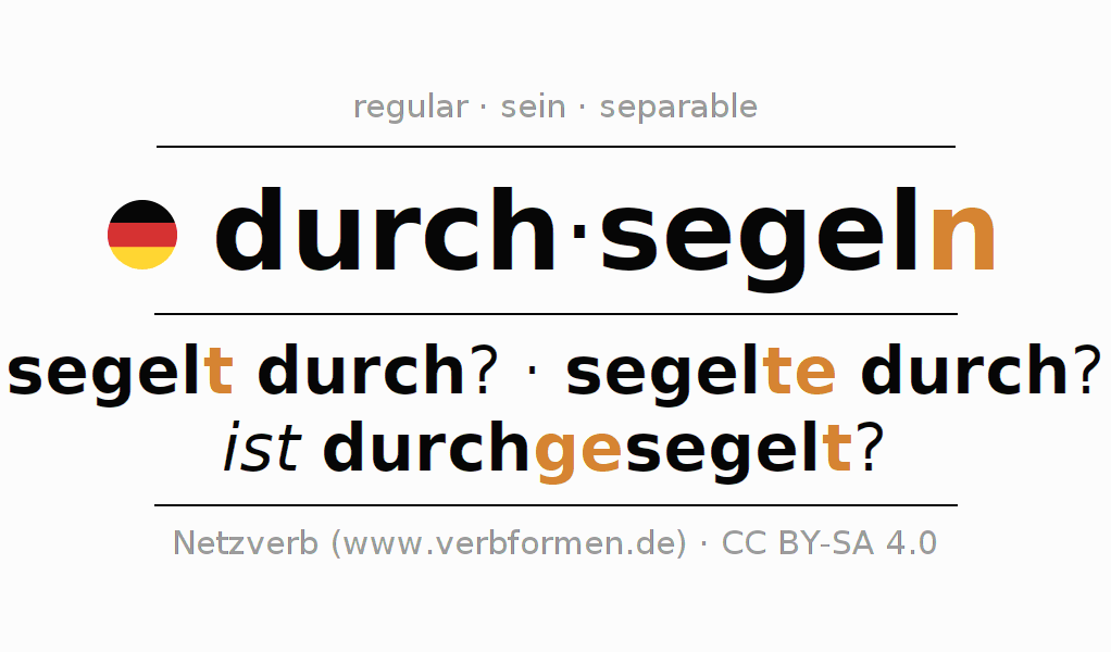- Presente: seg(e)l(e) (du) durch, segeln wir durch, segelt (ihr) durch, segeln Sie durch