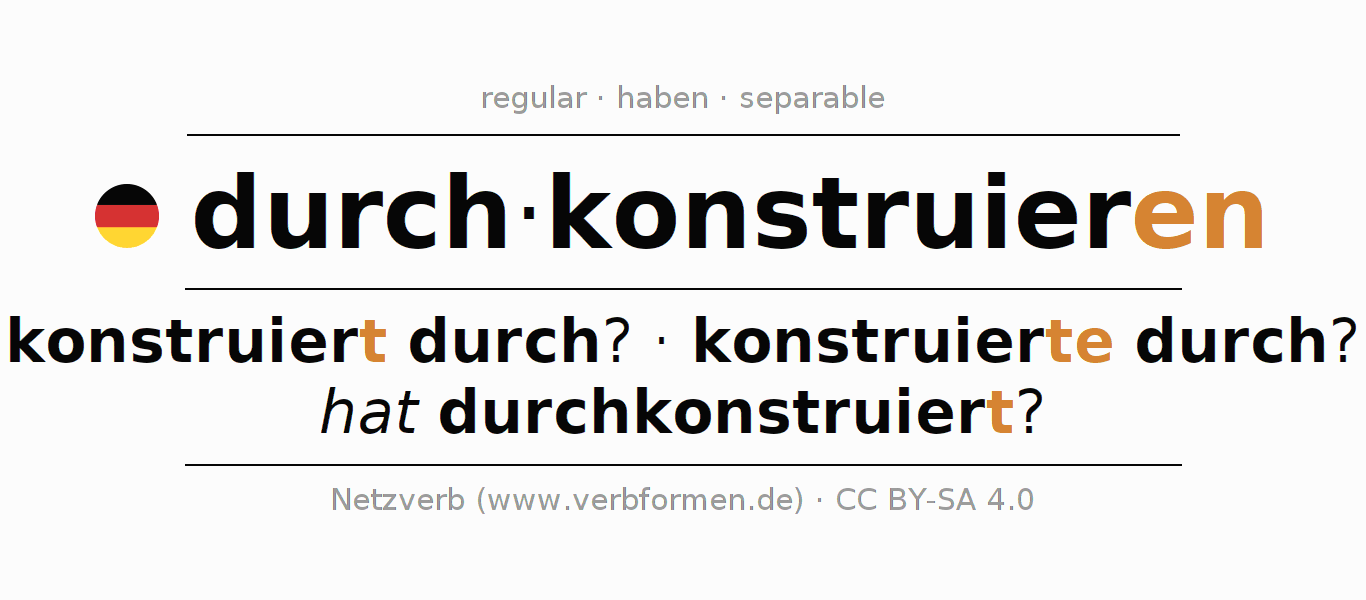 - Presente: konstruier(e) (du) durch, konstruieren wir durch, konstruiert (ihr) durch, konstruieren Sie durch