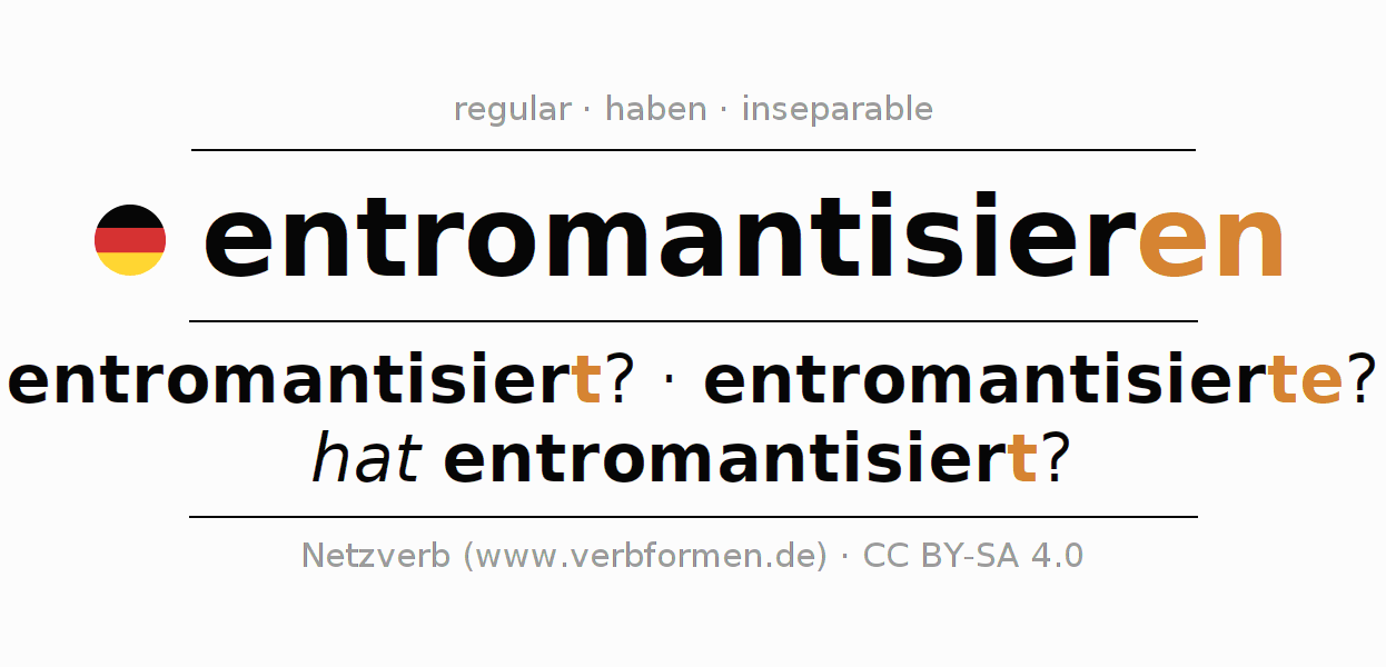 ich | entromantisier(e)? | entromantisierte? | entromantisiere? | entromantisierte? | - |