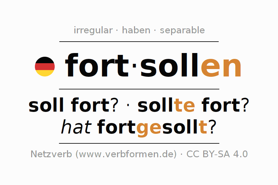 - Presente: soll ich fort?, sollst du fort?, soll er fort?, sollen wir fort?, sollt ihr fort?, sollen sie fort?