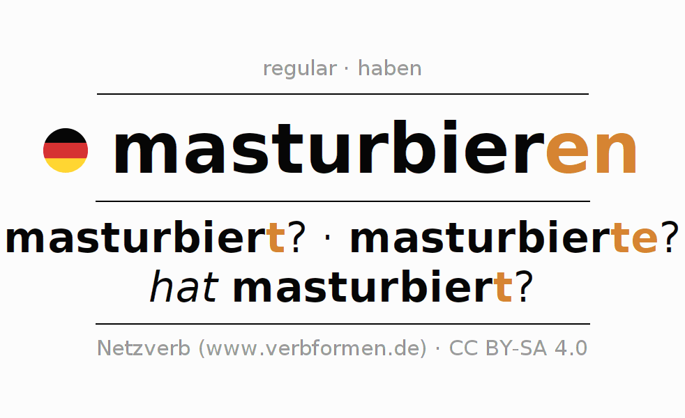 - Pretérito: masturbierte ich?, masturbiertest du?, masturbierte er?, masturbierten wir?, masturbiertet ihr?, masturbierten sie?