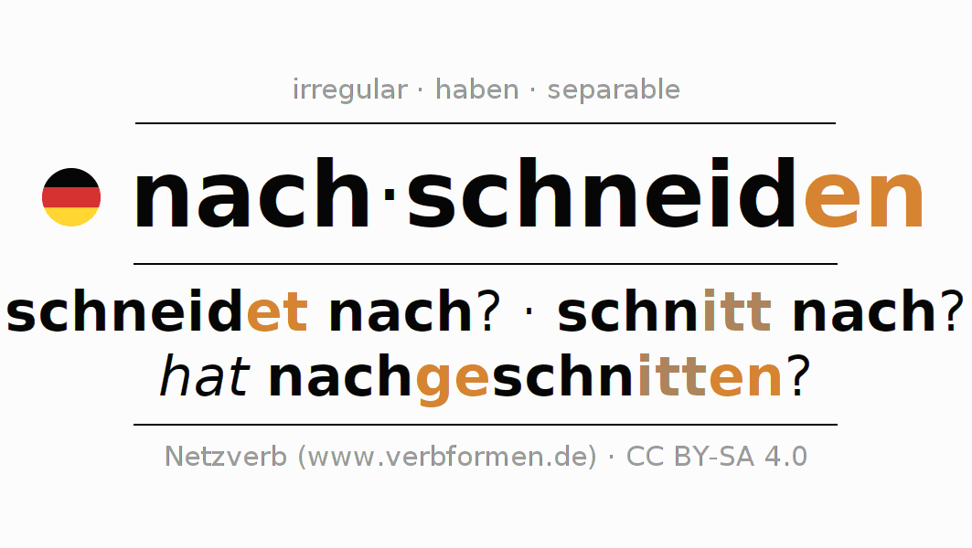 - Presente: schneid(e) (du) nach, schneiden wir nach, schneidet (ihr) nach, schneiden Sie nach
