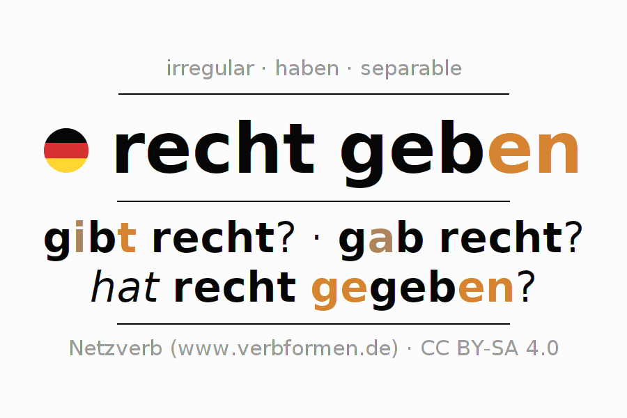 - Presente: gib (du) recht, geben wir recht, gebt (ihr) recht, geben Sie recht
