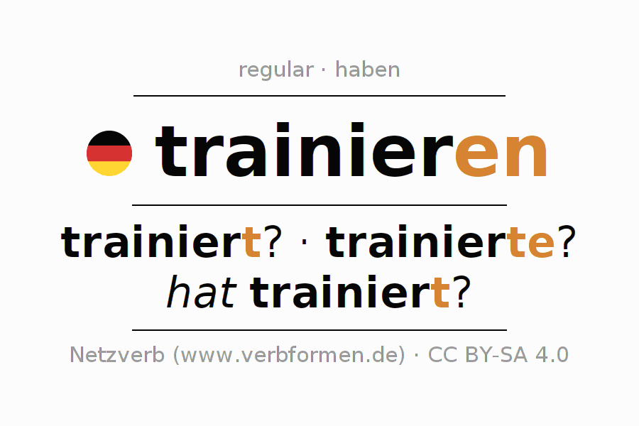 - Presente: trainier(e) (du), trainieren wir, trainiert (ihr), trainieren Sie