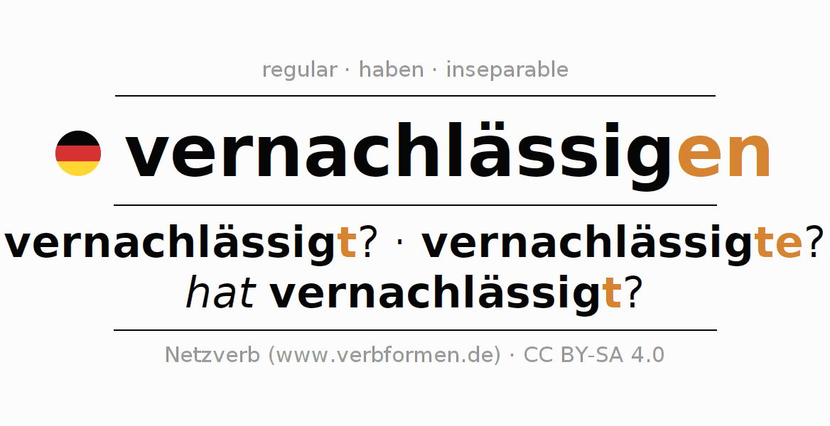 - Infinitivo I: vernachlässigen, zu vernachlässigen