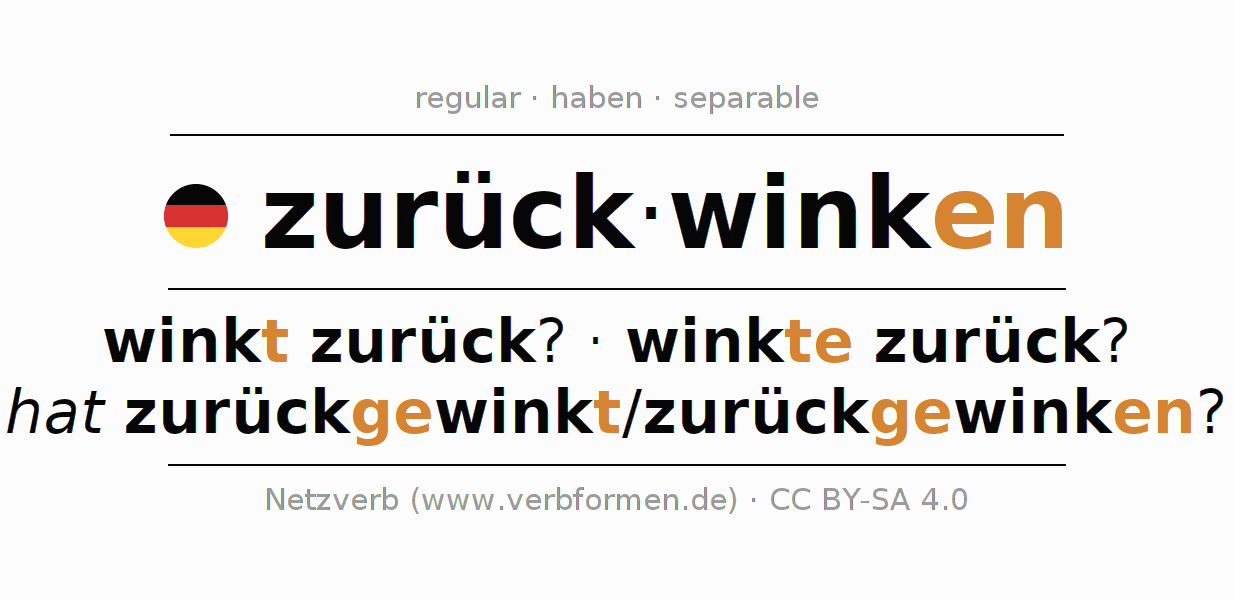- Presente: wink(e) (du) zurück, winken wir zurück, winkt (ihr) zurück, winken Sie zurück