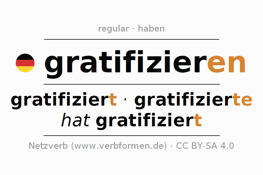 - Presente: gratifizier(e) (du), gratifizieren wir, gratifiziert (ihr), gratifizieren Sie