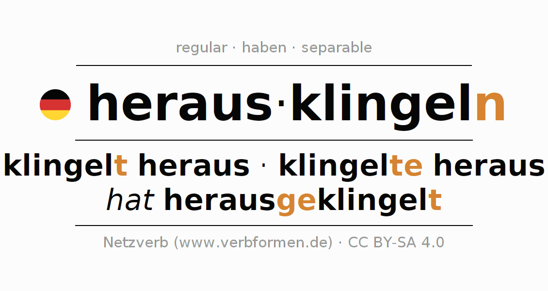 klingelt heraus · klingelte heraus · hat herausgeklingelt