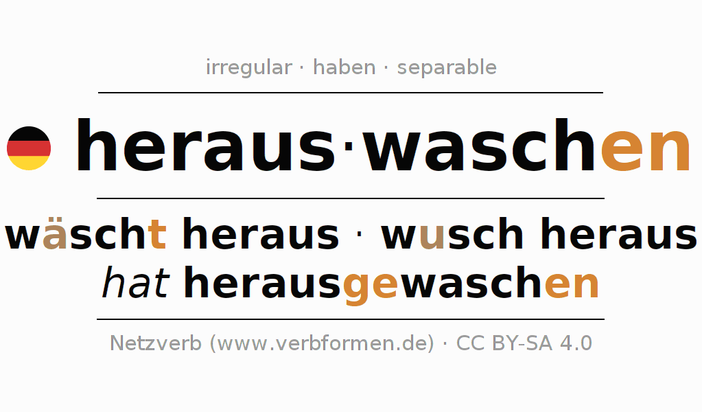 wäscht heraus · wusch heraus · hat herausgewaschen