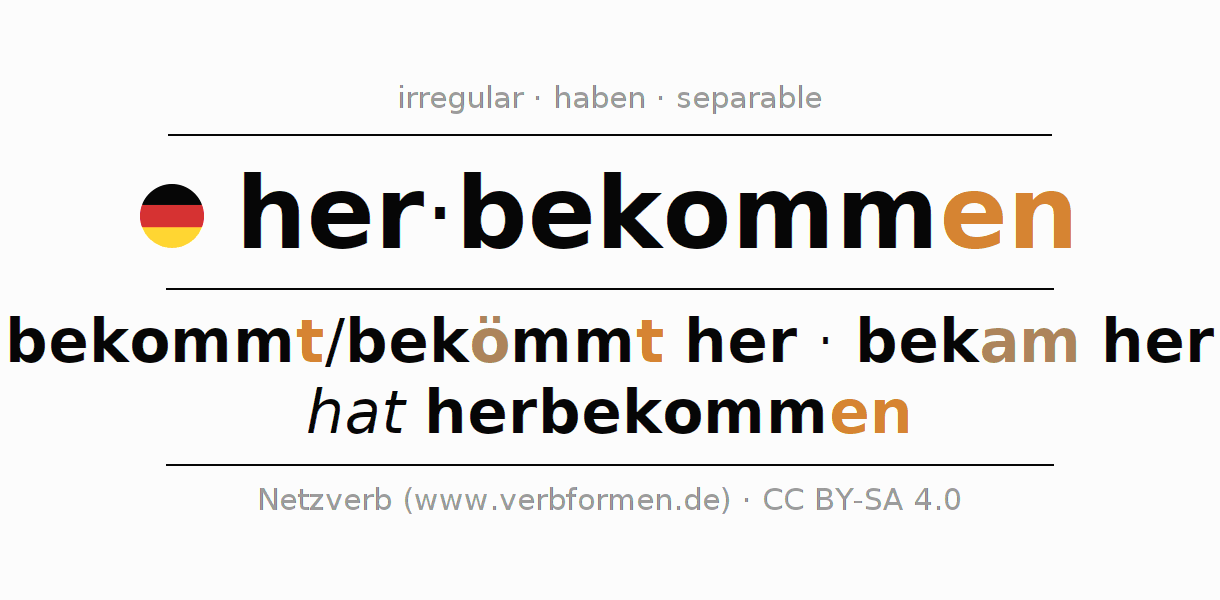 bekommt/bekömmt⁷ her · bekam her · hat herbekommen