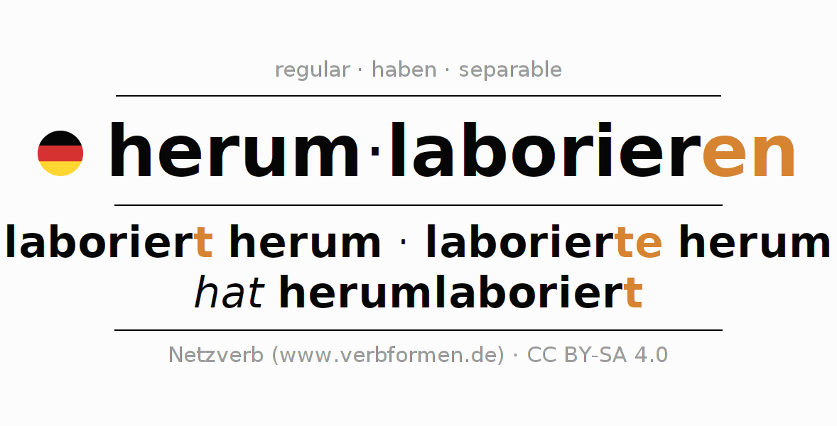 - Pasado perfecto: ich habe herumlaboriert, du hast herumlaboriert, er hat herumlaboriert, wir haben herumlaboriert, ihr habt herumlaboriert, sie haben herumlaboriert