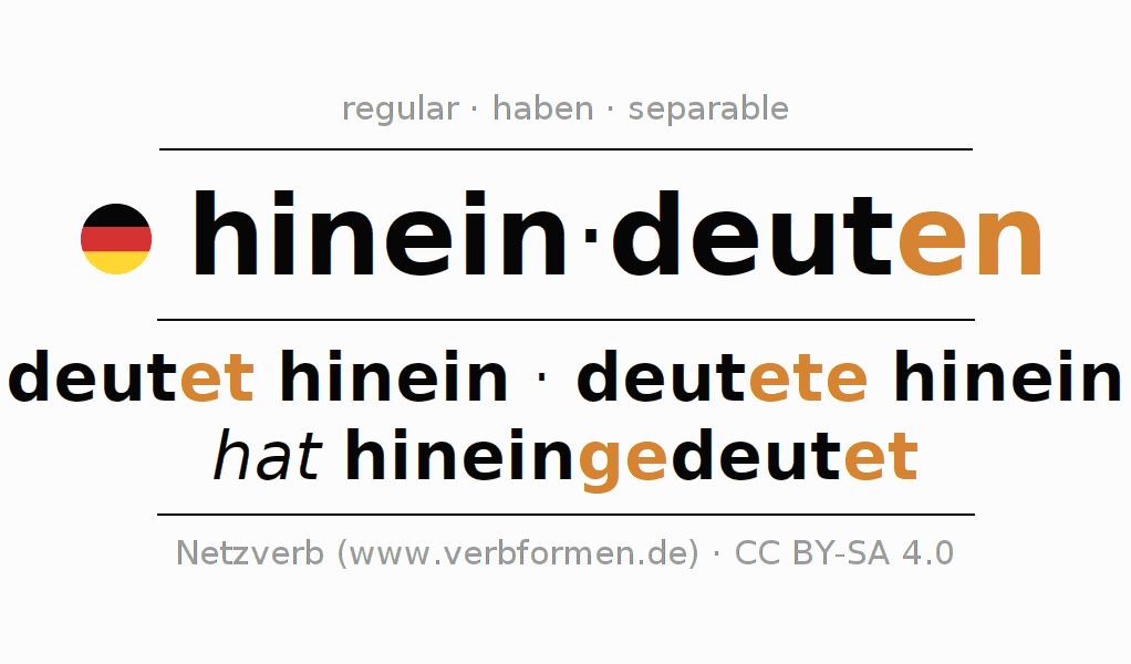 - Presente: deut(e) (du) hinein, deuten wir hinein, deutet (ihr) hinein, deuten Sie hinein