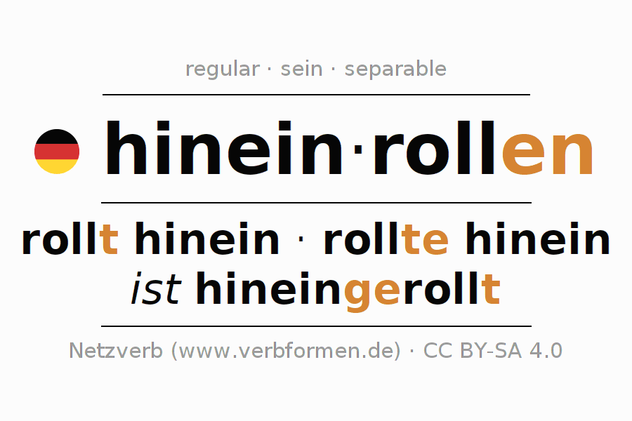 - Presente: roll(e) (du) hinein, rollen wir hinein, rollt (ihr) hinein, rollen Sie hinein
