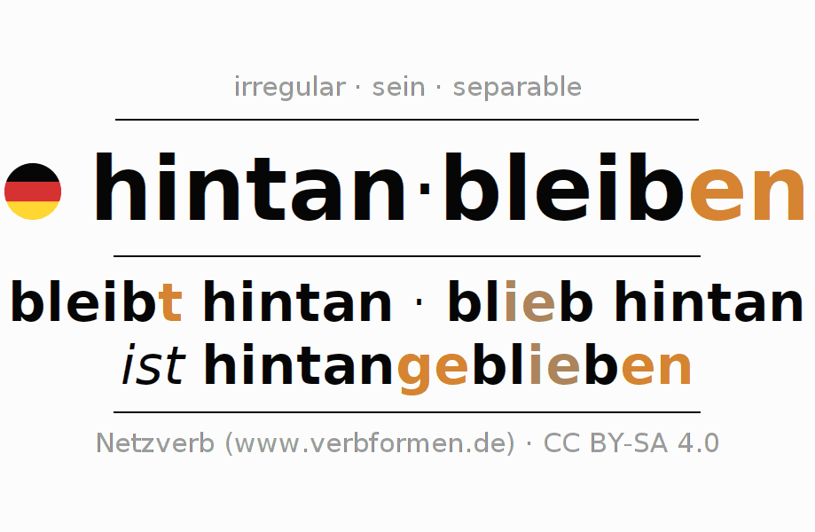 - Presente: ich bleib(e) hintan, du bleibst hintan, er bleibt hintan, wir bleiben hintan, ihr bleibt hintan, sie bleiben hintan