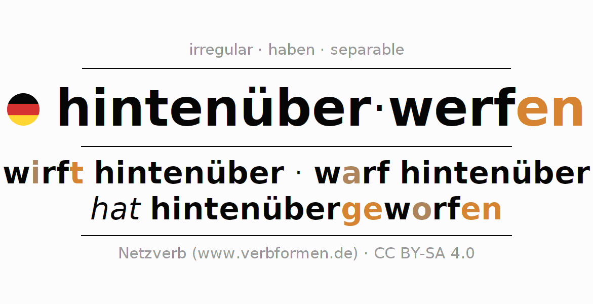 wirft hintenüber · warf hintenüber · hat hintenübergeworfen