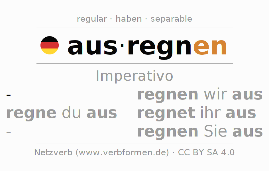 El verbo ausregnen, conjugado completamente en todas las personas y números gramaticales en Imperativo Presente.