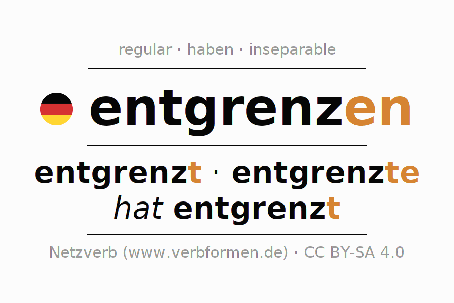 El verbo entgrenzen, conjugado completamente en todas las personas y números gramaticales en Imperativo Presente.