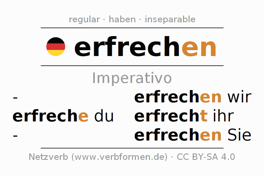 El verbo erfrechen, conjugado completamente en todas las personas y números gramaticales en Imperativo Presente.