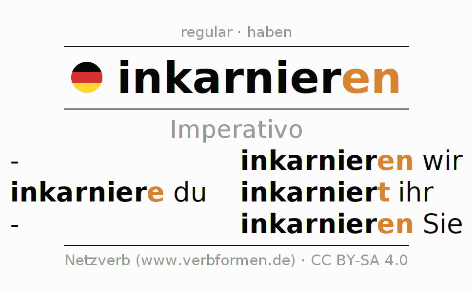 El verbo inkarnieren, conjugado completamente en todas las personas y números gramaticales en Imperativo Presente.