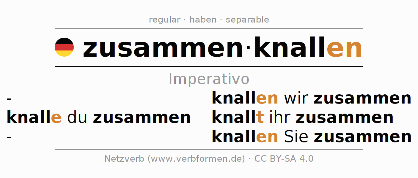 - ¿Cómo se conjuga zusammenknallen en Imperativo?