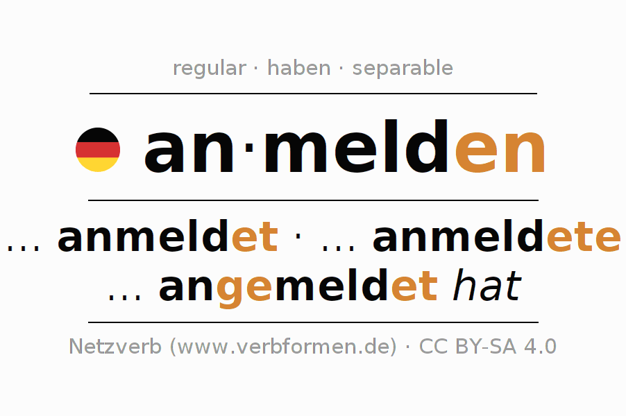 - ¿Cómo se conjuga anmelden en Infinitivo?