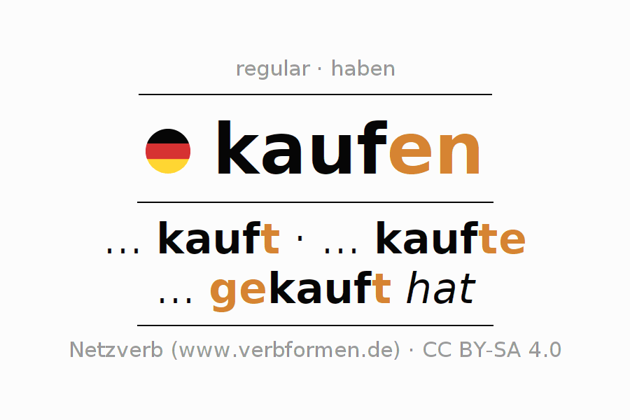 La conjugación de kaufen en Imperativo Presente Imperativo Activo es kaufe (du), kaufen wir, kauft (ihr), kaufen Sie.Para construir esta formas se requiere seguir algunas reglas gramaticales y también las especificaciones para la conjugación de verbos simples de kaufen en Imperativo . Comentarios ☆