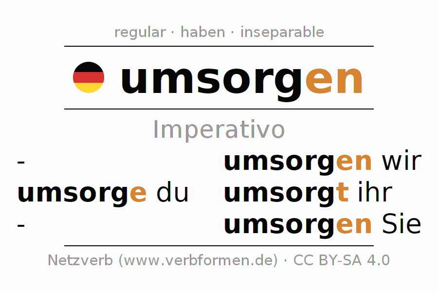 - ¿Cómo se conjuga umsorgen en Imperativo?