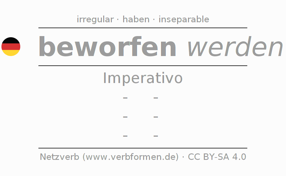 El verbo bewerfen, conjugado completamente en todas las personas y números gramaticales en Imperativo Presente.