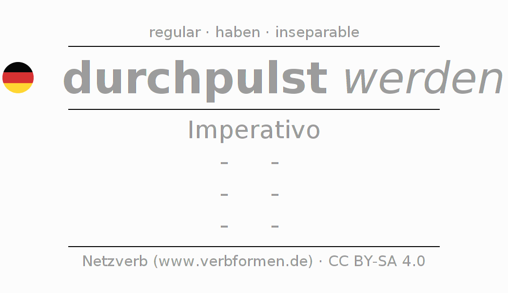 El verbo durchpulsen, conjugado completamente en todas las personas y números gramaticales en Imperativo Presente.